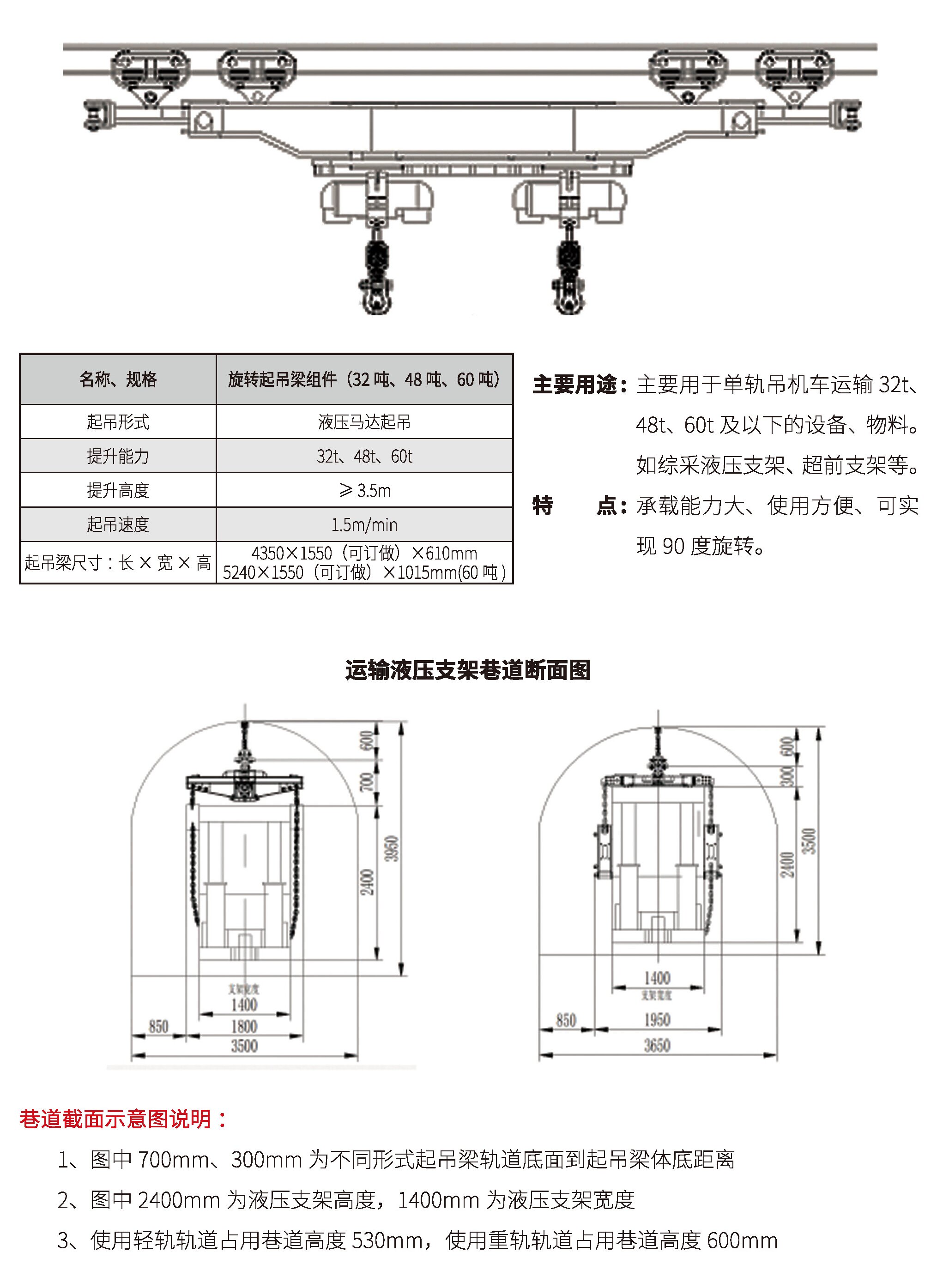防爆鋰電池單軌吊機(jī)車
